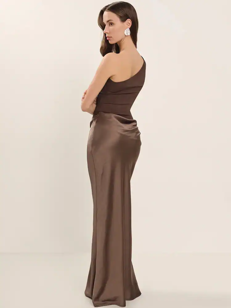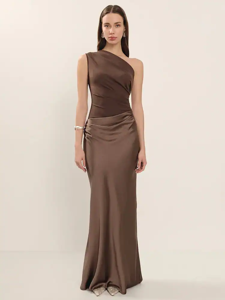 Satin One Shoulder Maxi Dress: Sexy Backless Evening Gown 2026